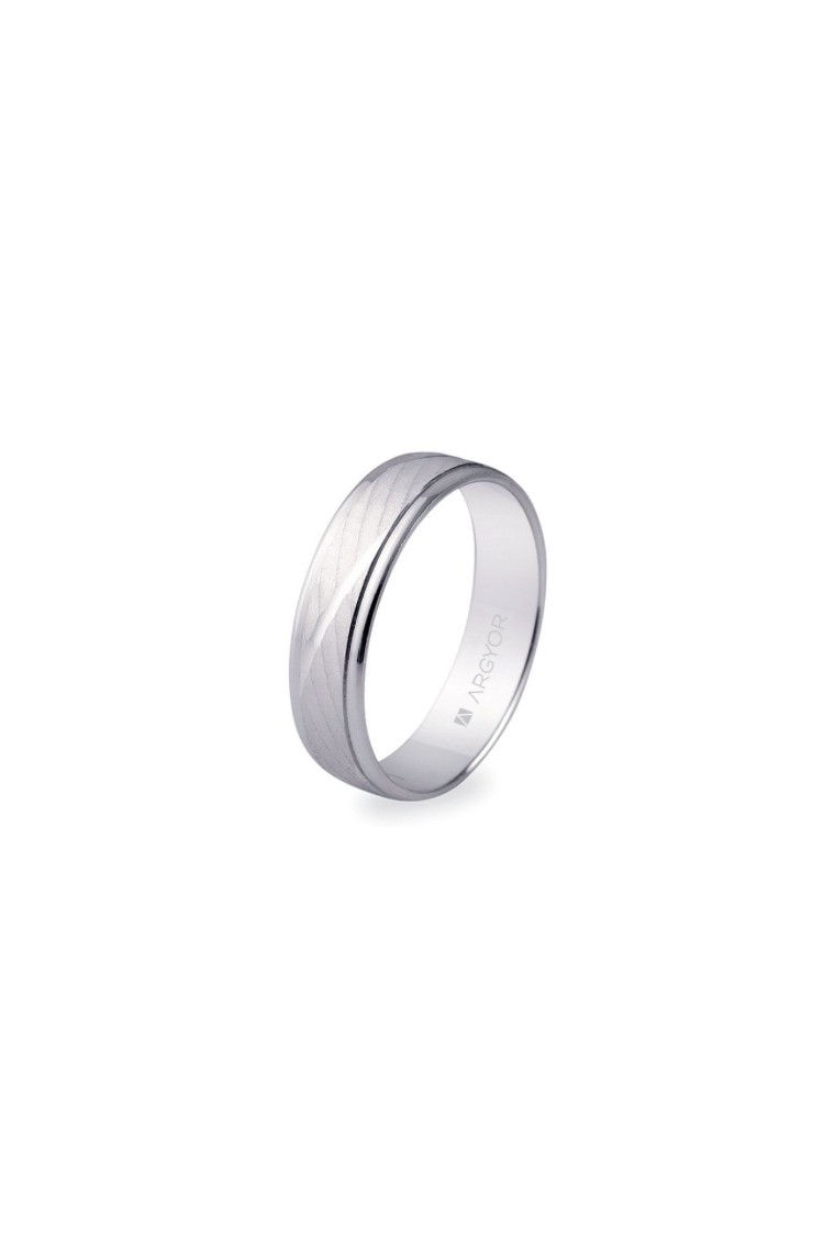ALIANZA ARGYOR BLANCO DE 18K CON ACABADO ESTRIADO MATE Y BRILLO. 5 MILÍMETROS