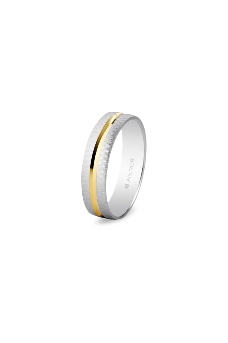 ALIANZA ORO BICOLOR 18K ACABADO MATE BLANCO EN LOS LATERALES Y BRILLO HUNDIDO AMARILLO EN EL CENTRO. 4 MILÍMETROS